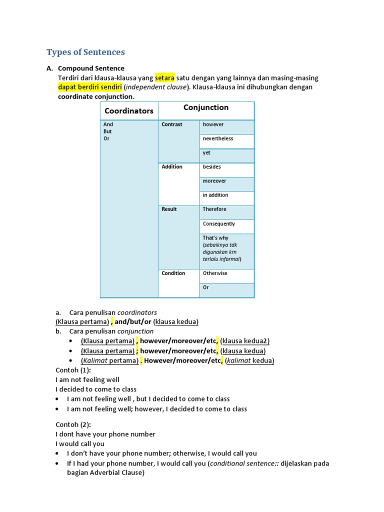 Dalam postingan ada banyak contoh kalimat menggunakan conjunction yang dikelompokkan berdasarkan jenisnya.